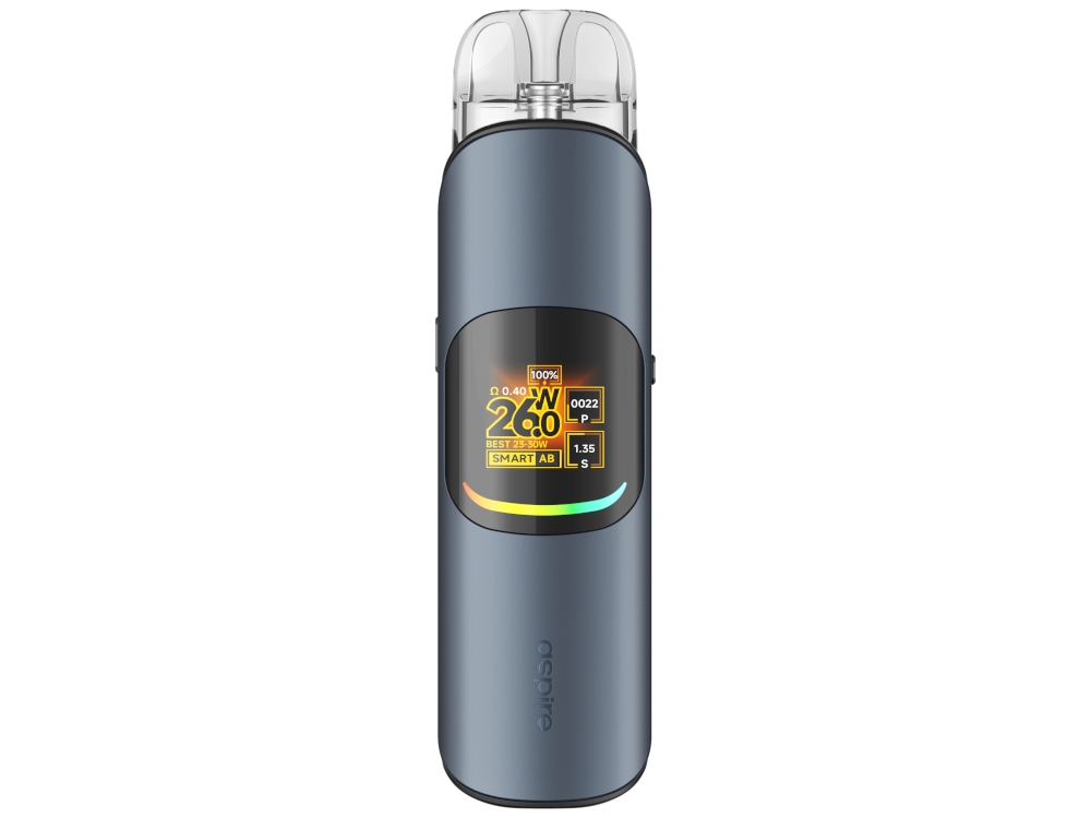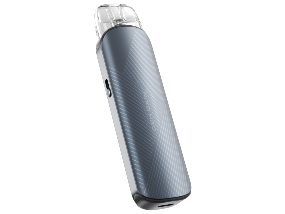 Die Pixo Neo von Aspire verfügt über eine fest verbaute Akkuzelle mit einer Kapazität von 1.300 mAh, die über das mitgelieferte USB-C-Ladekabel aufgeladen werden kann. Die maximale Ausgangsleistung beträgt 30 Watt. Alle relevanten Informationen, wie die aktuelle Ausgangsleistung oder der Akkustand, lassen sich auf dem 0,85 Zoll Farbdisplay ablesen. Die Aktivierung der E-Zigarette ist sowohl über die Feuertaste als auch durch Ziehen am Mundstück möglich. Das Liquid wird in einem der beiden im Lieferumfang enthaltenen Pixo Pods aufbewahrt. Beim Gebrauch stehen verschiedene Modi zur Verfügung. Im Variable Wattage-Modus (VW) kann die Ausgangsleistung zwischen 5 und 30 Watt eingestellt werden. Alternativ übernimmt im Smart-Modus das Gerät die Einstellung der Parameter entsprechend des Widerstands des verwendeten Pixo Pods. Die Pixo Neo verfügt über eine Airflow Control, mit der der Zugwiderstand eingestellt werden kann. Über einen seitlich angebrachten Schieberegler lässt sich der Luftstrom regulieren: Eine kleinere Öffnung sorgt für einen restriktiveren Zug. Zum Lieferumfang gehören zwei Pixo Pods mit unterschiedlichen Widerständen. Der bereits vorinstallierte Pod mit einer fest verbauten 0,6 Ohm Coil ist für den Leistungsbereich von 14 bis 19 Watt ausgelegt. Zusätzlich ist ein 0,4 Ohm Pixo Pod enthalten, der für eine Ausgangsleistung von 23 bis 30 Watt genutzt werden kann. Alternativ sind auch Pixo Pods mit 1,0 oder 1,2 Ohm erhältlich, die separat erworben werden müssen. Unabhängig vom Widerstand lassen sich die Pods mit bis zu 3 ml Liquid befüllen, wobei der Befüllvorgang über eine seitliche Einfüllöffnung erfolgt. Da die Pods zu den Verschleißteilen der E-Zigarette gehören, sollten sie regelmäßig ausgetauscht werden.