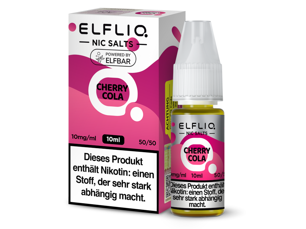 Das ELFLIQ Nikotinsalz Liquid Cherry Cola ist ein E-Liquid von Elfbar mit dem Aroma einer Cola, die mit Kirschen angesetzt wurde und von einer leichten Kühle begleitet wird. Es ist in den Nikotinstärken 10 mg/ml und 20 mg/ml erhältlich. Das Liquid ist in einer 10 ml Flasche mit 10 ml Inhalt erhältlich und kann sofort in einer E-Zigarette verwendet werden.