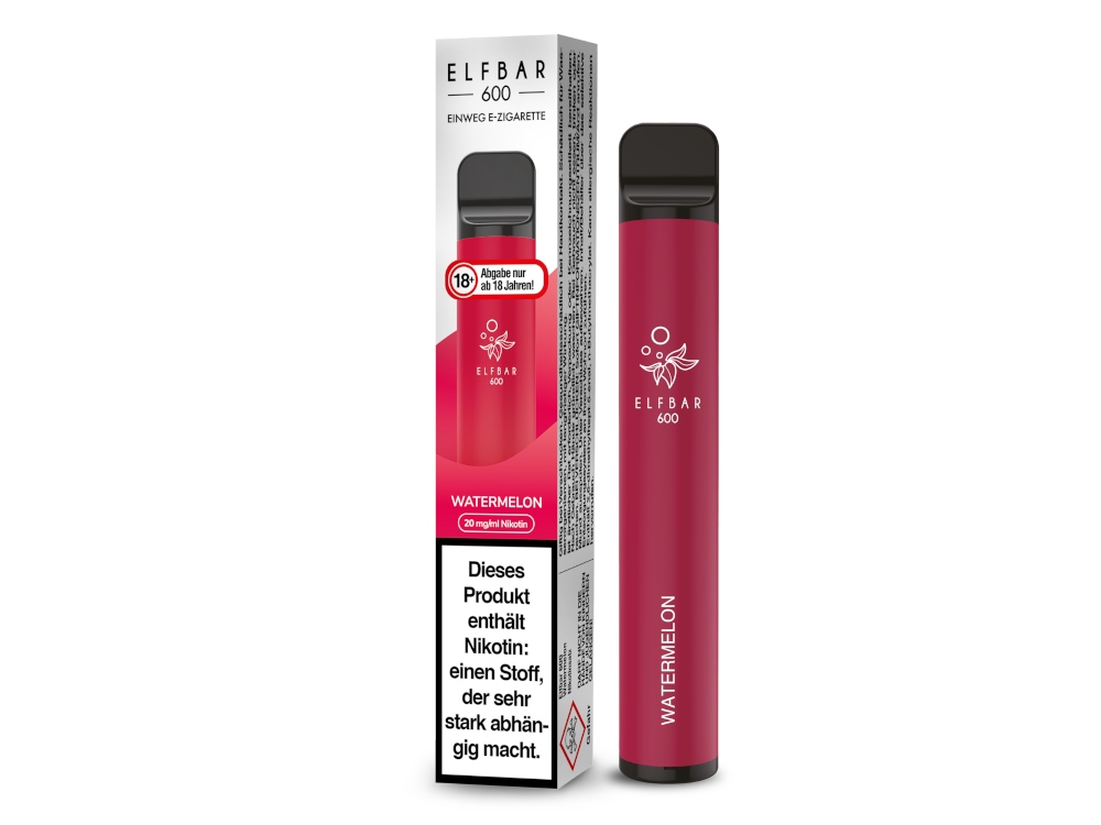 Die Elfbar 600 Einweg E-Zigarette hat ein Tankvolumen von 2 ml und ist mit ebenso viel Nikotinsalz-Liquid befüllt, welches eine Nikotinstärke von 20 mg/ml aufweist. Der Akku der Elfbar 600 ist fest verbaut und hat eine Kapazität von 360 mAh. Diese reicht für ca. 600 Züge aus. Sie haben die Auswahl aus vielen verschiedenen Geschmackssorten. Das Gerät arbeitet mit einer integrierten Zugautomatik. Der Akku und der Tank der Elfbar 600 können, sobald diese leer sind, nicht wieder aufgeladen oder aufgefüllt werden. Daher muss das Gerät am Ende fachgerecht entsorgt werden.