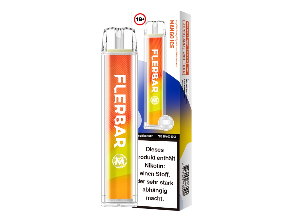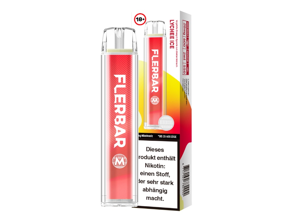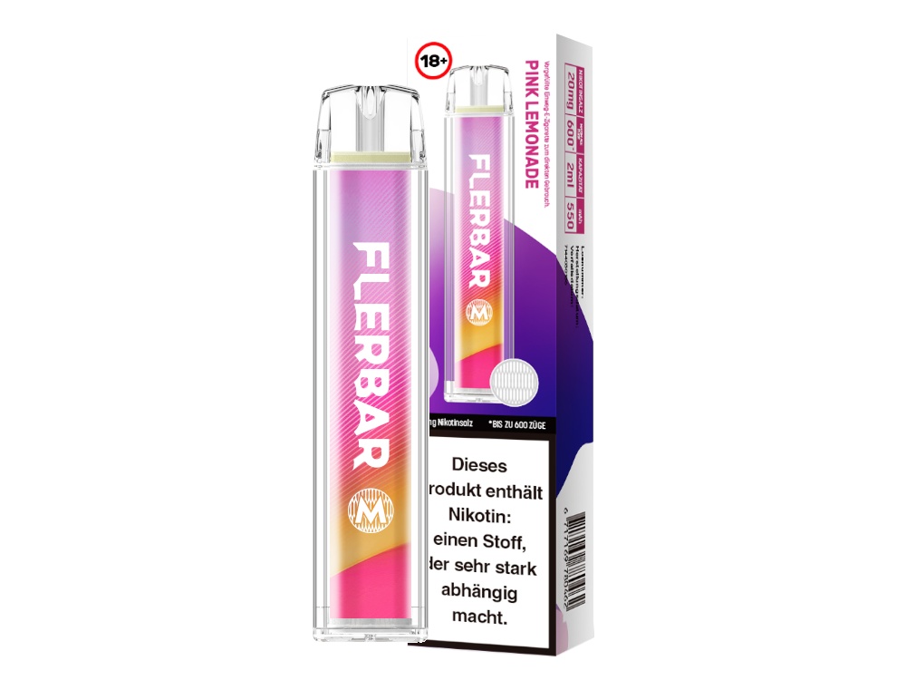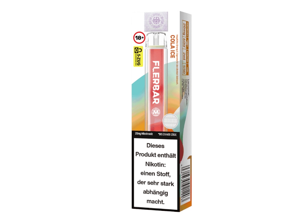 Die Flerbar M Einweg E-Zigarett kommt mit einer Akkukapazität von 550 mAh. Damit ist sie in der Lage, eine Nutzungsdauer von circa 600 Züge zu gewährleisten. Das kann aber je nach Zug- bzw. Dampfverhalten variieren. Die Flerbar M Disposable ist eine E-Zigarette mit vorbefüllten Pod bzw. Tank. Dieser fasst 2ml Liquid. Dank der Auswahl aus insgesamt 25 Sorten bietet sie eine breite Palette an Geschmacksrichtungen, um der individuellen Vorliebe gerecht zu werden. Es stehen 25 Sorten mit einer Nikotinstärke von 20 mg/ml zur Auswahl, von denen 10 auch in der Stärke 0 mg/ml erhältlich sind. Die Flerbar M Einweg E-Zigarette ist eine Option für Nutzer, die nach einer praktischen und benutzerfreundlichen Alternative zu herkömmlichen E-Zigaretten suchen. Mit ihrer Akkukapazität, dem Liquidvolumen und der Vielzahl an Geschmacksrichtungen bietet sie ein Dampferlebnis, bei dem jeder fündig wird.