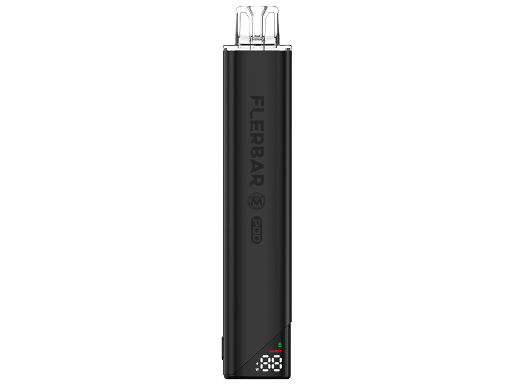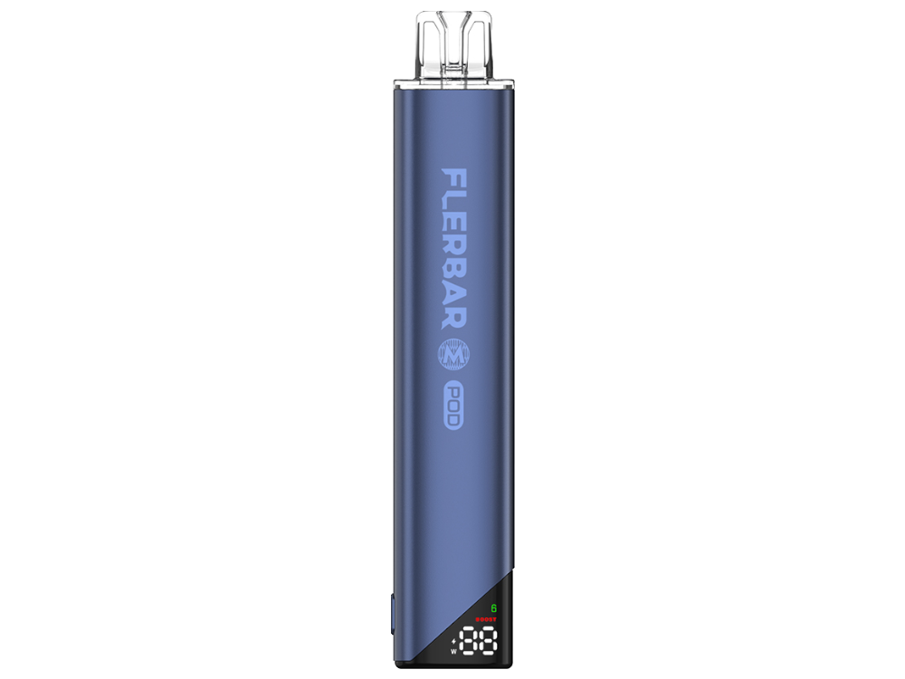 Der Flerbar Akku ist eine Energiequelle für Flerbar Pods. Das Gerät verfügt über eine Kapazität von 650 mAh. Die Aktivierung erfolgt über eine Zugautomatik. Seitlich am Gerät befindet sich eine Taste zur Auswahl zwischen zwei Leistungsstufen (Normal- & Booster-Modus). Die Aktivierung und Deaktivierung des Geräts erfolgt durch fünfmaliges Ziehen am Mundstück. Der Akku wird über einen USB-C-Anschluss geladen. Ein USB-C-Ladekabel ist nicht Teil des Lieferumfangs.