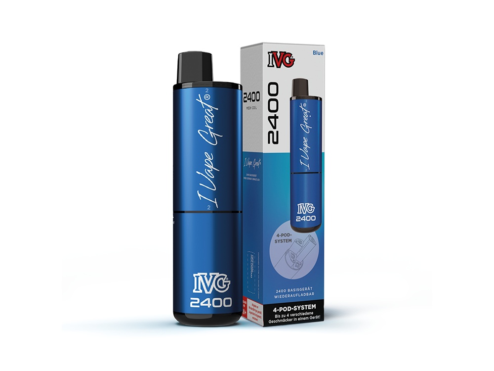 Der IVG 2400 Akku ist wiederaufladbar und besitzt eine Akkukapazität von 1.000 mAh. Falls die Energie erschöpft ist, kann er über den USB-C Anschluss aufgeladen werden. Der IVG 2400 Akku agiert als Basisgerät und ist auch als 4-Pod-System bekannt. Das IVG 2400 Basisgerät ermöglicht die Verwendung von insgesamt vier vorgefüllten IVG 2400 Pods, wodurch die Auswahl zwischen vier unterschiedlichen Geschmacksrichtungen möglich ist. Die Geschmacks Wechsel sind durch einfaches Drehen möglich. Die Bedienung des Geräts ist simpel dank der Zugautomatik, welche keine manuellen Einstellungen beim Dampfen erfordert. Mit dem IVG 2400 4-Pod-System Basisgerät, das alle vier Pods (jeweils mit 2 Millilitern Liquid) nutzt, sind bis zu 2400 Züge möglich. Beachten Sie, dass die tatsächliche Anzahl variieren kann, abhängig vom individuellen Nutzerverhalten.