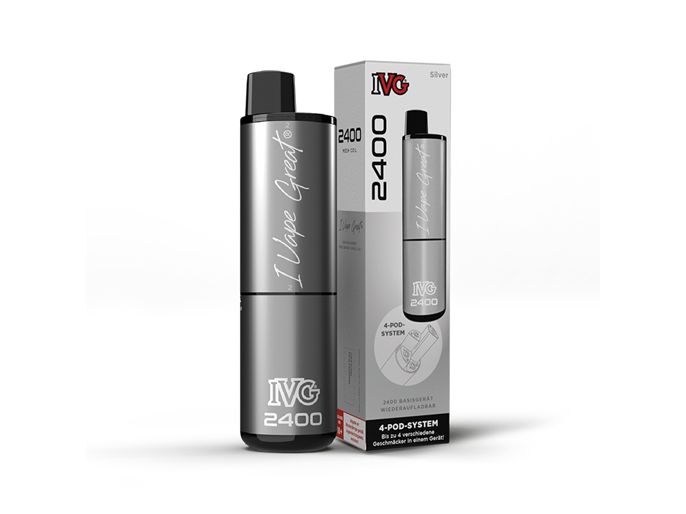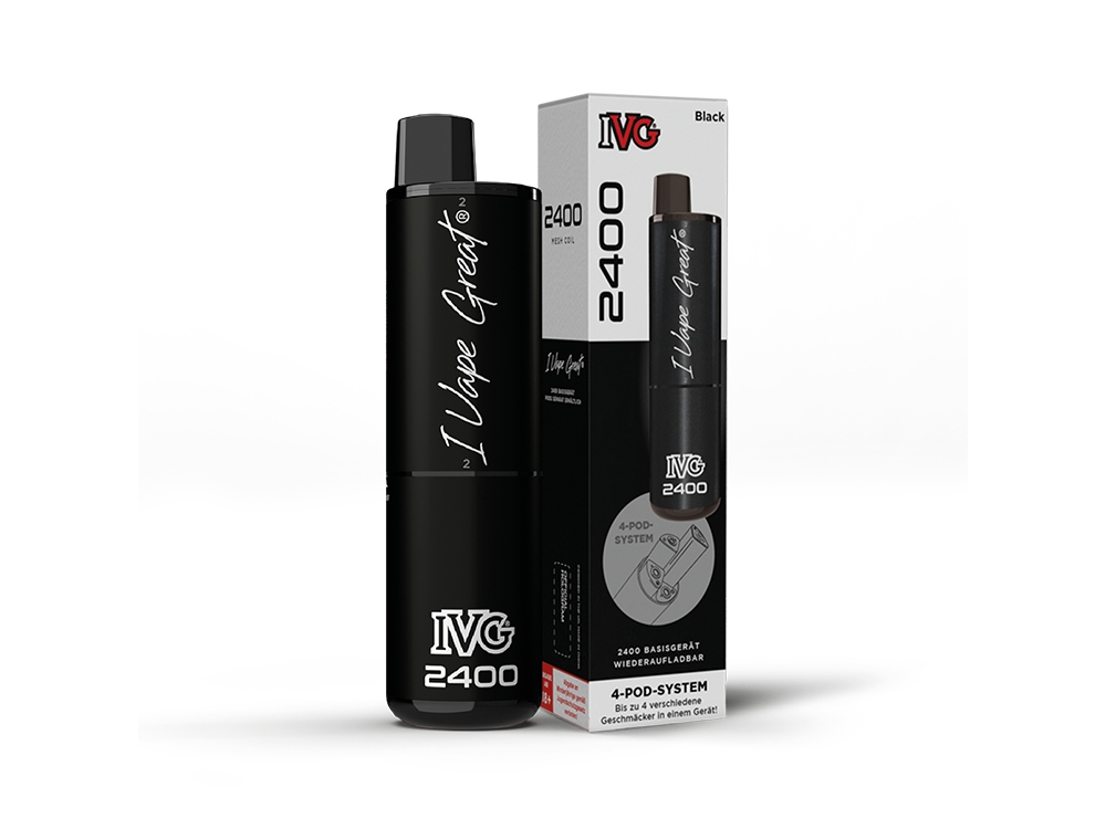 Der IVG 2400 Akku ist wiederaufladbar und besitzt eine Akkukapazität von 1.000 mAh. Falls die Energie erschöpft ist, kann er über den USB-C Anschluss aufgeladen werden. Der IVG 2400 Akku agiert als Basisgerät und ist auch als 4-Pod-System bekannt. Das IVG 2400 Basisgerät ermöglicht die Verwendung von insgesamt vier vorgefüllten IVG 2400 Pods, wodurch die Auswahl zwischen vier unterschiedlichen Geschmacksrichtungen möglich ist. Die Geschmacks Wechsel sind durch einfaches Drehen möglich. Die Bedienung des Geräts ist simpel dank der Zugautomatik, welche keine manuellen Einstellungen beim Dampfen erfordert. Mit dem IVG 2400 4-Pod-System Basisgerät, das alle vier Pods (jeweils mit 2 Millilitern Liquid) nutzt, sind bis zu 2400 Züge möglich. Beachten Sie, dass die tatsächliche Anzahl variieren kann, abhängig vom individuellen Nutzerverhalten.