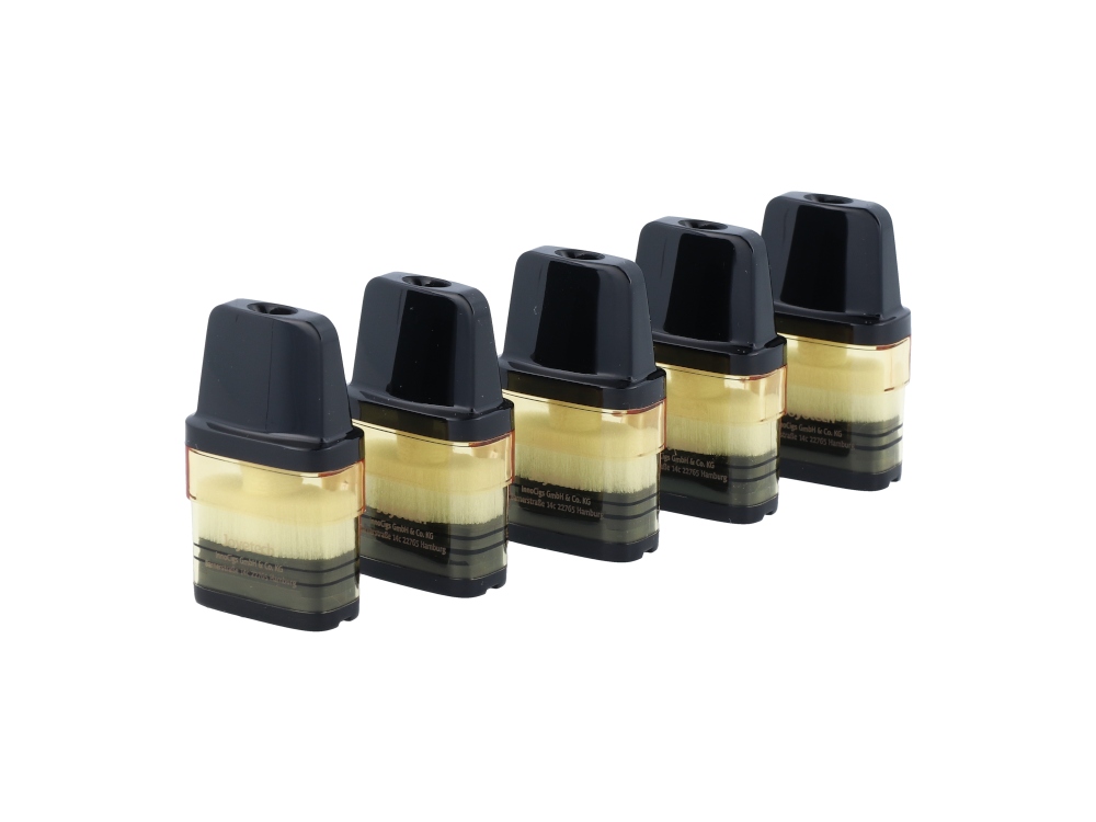 Aus dem Hause Joyetech kommt dieser WideWick Pod. Dieser ist der passende Pod für die gleichnamige E-Zigarette. Der Pod ist mit einem fest verbauten und 1,2 Ohm starken Verdampferkopf ausgestattet. Aufgrund des Widerstandes ist der Pod für das Dampfen im MTL-Bereich ausgelegt. Das zu verdampfende Liquid findet über ein Top-Filling System seinen Platz im Tank des Pods. Sie können bis zu 2 ml Ihres gewünschten Liquids einfüllen. Um das Einfüllloch freizulegen, muss lediglich das Mundstück vom Pod getrennt werden. Da der Verdampferkopf fest verbaut ist, ist es notwendig, den gesamten Pod in regelmäßigen Abständen gegen einen neuen Pod auszutauschen. So wirken Sie einer negativen Dampf- und/oder Geschmacksentwicklung entgegen. Passend dazu erhalten Sie mit einer Packung fünf Joyetech WideWick Pods.