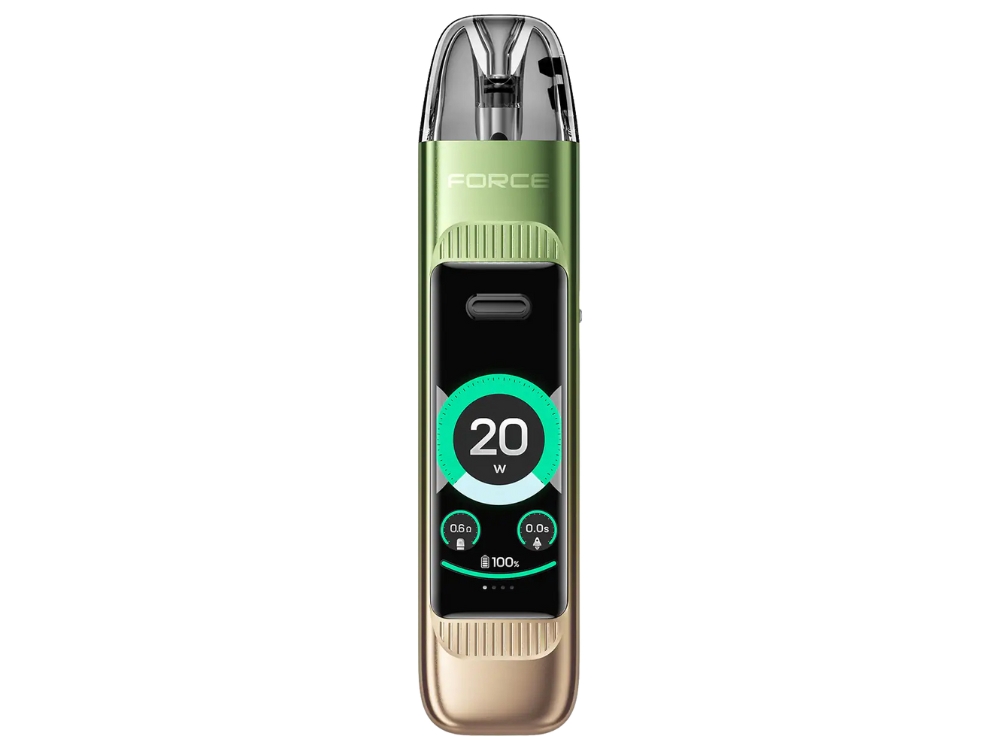 Das Linvo Force X Kit ist ein E-Zigaretten-System, das auf eine Kombination aus fortschrittlicher Technologie und ansprechendem Design setzt. Es wurde entwickelt, um eine vielseitige Nutzung zu ermöglichen, die sowohl das indirekte (MTL) als auch das direktere (RDL) Dampfen abdeckt. Ein 1.000 mAh Akku ist in das Gerät integriert und wird über ein 1,47-Zoll-HD-Touchdisplay gesteuert, welches eine intuitive Bedienung erlaubt. Das Display zeigt relevante Informationen wie Leistungseinstellungen, Akkustand, Zugzähler und den Widerstand des Pods an. Die USB-C-Schnellladefunktion mit 5V/2A sorgt für eine zügige Wiederaufladung. Die Ausgangsleistung des Geräts ist variabel von 5 bis 30 Watt, was eine präzise Anpassung an individuelle Vorlieben ermöglicht. Die Linvo Force X ist kompatibel mit den zugehörigen Pods, die in Varianten von 0,6 Ohm (für RDL) und 0,8 Ohm (für MTL) erhältlich sind. Diese Pods zeichnen sich durch eine gleichmäßige Geschmacks- und Dampfentwicklung aus und verfügen über einen Plug-and-Pull-Mechanismus für einen einfachen Austausch. Das Nachfüllen von E-Liquid erfolgt über ein praktisches Side-Filling-System. Das Design des Linvo Force X Kits legt Wert auf eine ergonomische Handhabung und verwendet hochwertige Materialien sowie eine abgerundete Form, die zu einem ansprechenden Gesamterscheinungsbild beiträgt.
