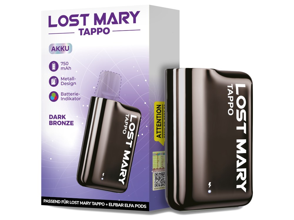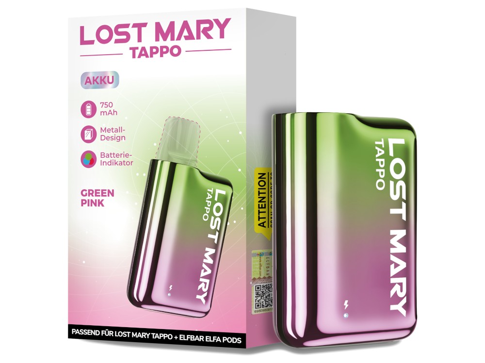 Der Lost Mary Tapp Akku ist das passende Gegenstück zu den Lost Mary Tappo Pods, die in verschiedenen Geschmacksrichtungen erhältlich sind. Die fest verbaute Akkuzelle verfügt über eine Kapazität von 750 mAh. Um den Akku mit neuer Energie zu versorgen, kann er mit einem USB-C Ladekabel, welches nicht im Lieferumfang enthalten ist, geladen werden. Der Akku wird durch einfaches Zusammenstecken mit den separat erhältlichen Tappo Pods verbunden. Verbunden werden kann der Akku aber nicht nur mit den Tappo Pods von Lost Mary, sondern auch mit den Elfbar Elfa Prefileld Pods, die in vielen verschiedenen Sorten erhältlich sind und dem Elfa Leer-Pod. Dank der Möglichkeit, den Akku aufzuladen und die Pods auszutauschen, bietet die Lost Mary Tappo eine nachhaltigere Alternative zu herkömmlichen Einweg-E-Zigaretten.