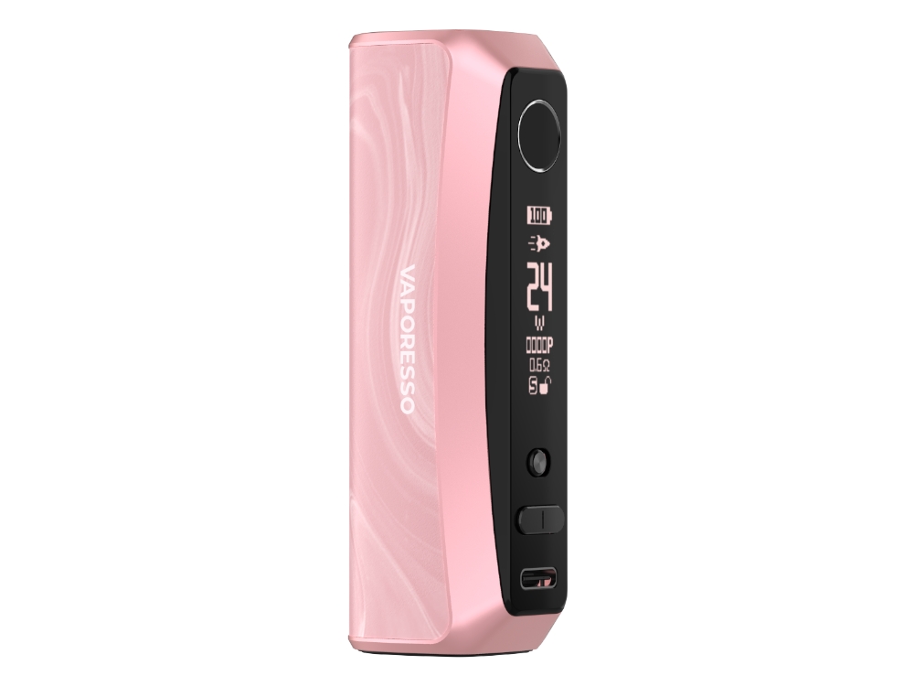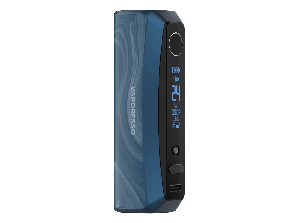 Der Vaporesso GTX One Pro Akku ist ein eigenständiger Akkuträger, der über eine Akkukapazität von 3.000 mAh und eine variable Leistungseinstellung von 5 bis 40 Watt verfügt. Die Bedienung und Überwachung von Betriebsdaten wie Akkustand und Widerstand erfolgt über ein 0,87-Zoll-OLED-Display. Durch seinen standardisierten 510er-Anschluss ist der Akku mit einer Vielzahl von Verdampfern kompatibel, deren Leistungsbedarf im Einstellungsbereich des Geräts liegt. Die Aufladung des fest verbauten Akkus wird über einen USB-C-Port sichergestellt, der einen Ladestrom von bis zu 2 Ampere unterstützt.