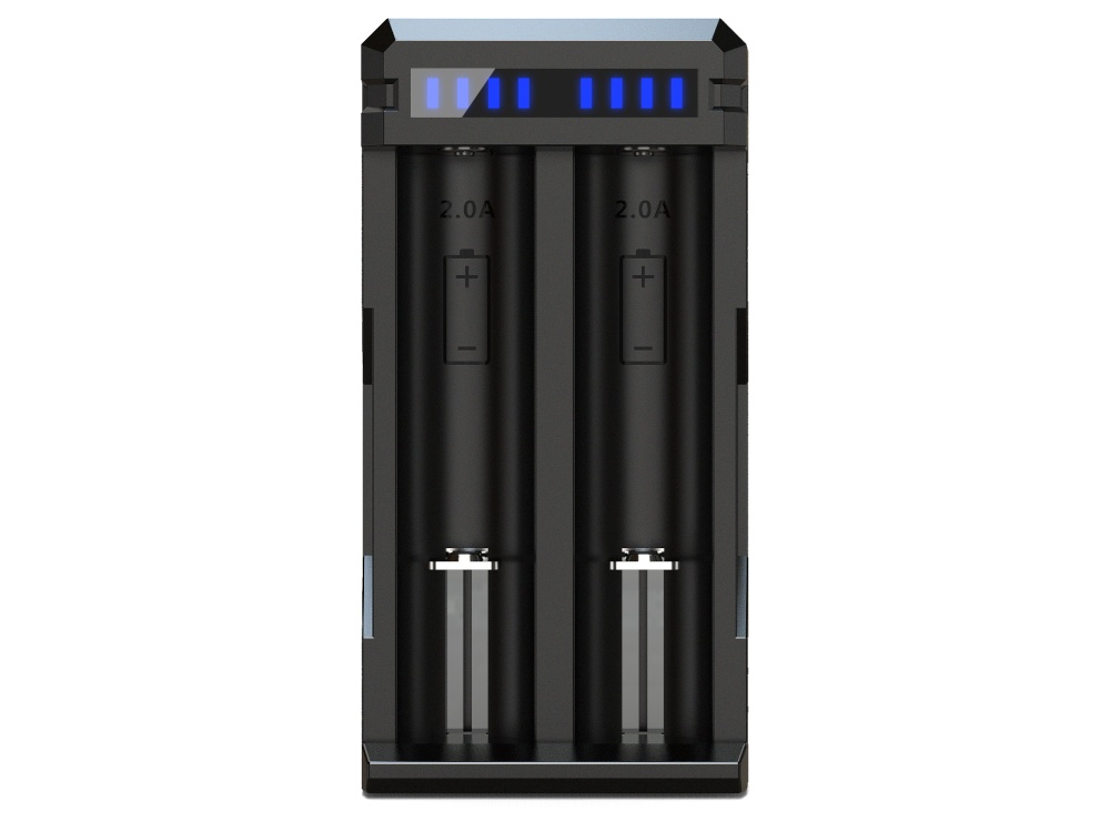 Das von XTAR extra für den E-Zigaretten Markt entworfene SC2 Ladegerät kann zwei Li-ion Akkuzellen mit bis zu 2A laden. Mit einer eingelegten Akkuzelle sind sogar 3A Ladestrom möglich. Um die Ladegeschwindigkeiten zu erreichen benötigen Sie einen passenden Netzstecker, da dieser nicht Bestandteil des Lieferumfangs ist. XTAR empfiehlt folgende Leistungsmerkmale für den Netzstecker: QC3,0 5V/3A, 9V/2A oder 12V/1,5A. Im SC2 Ladegerät finden Akkuzellen der Größe 18650 bis 26650 Platz. Auch 20700 und 21700er Akkuzellen mit PCB Schutzschaltung haben ausreichend Platz im Ladegerät. Den Akkuladestand erfahren Sie über die Anzeige oberhalb der Akkuaufnahmen.