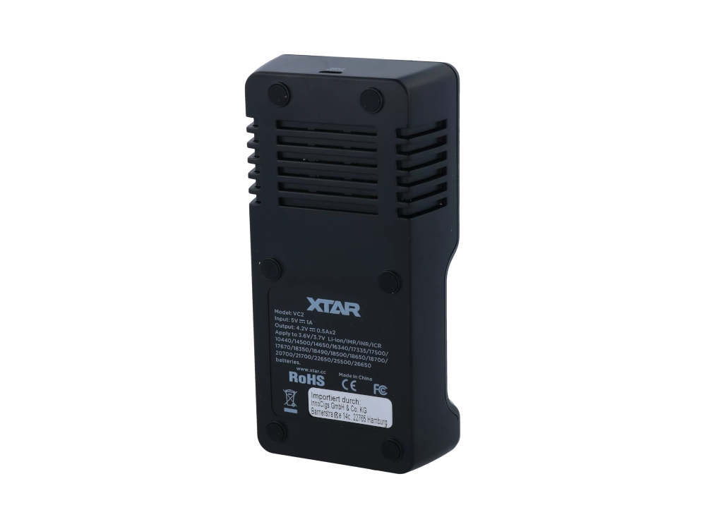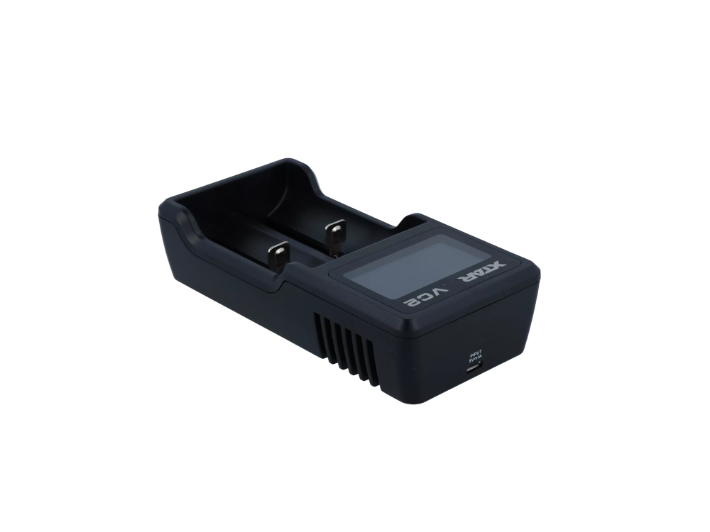 Von Xtar erhalten Sie das VC2 Ladegerät. Über das große LCD Display haben Sie alle relevanten Informationen stets im Blick. Es werden Ihnen die bereits geladenen mAh angezeigt sowie die Ladegeschwindigkeit in A (Ampere). Zum Lieferumfang gehört ein Micro-USB Kabel, welches Sie an ein 5V 1A USB Netzstecker anschließen sollten, um die maximale Ladespannung zu erreichen. Der Netzstecker ist nicht Bestandteil des Lieferumfangs. Das Xtar VC2 kann alle gängigen Li-ion Akkuzellen mit Strom versorgen. Hier stellen lediglich 20700 und 21700er Akkuzellen mit PCB Schutzschaltung ein Problem dar, da diese Zellen zu lang sind. Im Ladegerät können Sie bis zu zwei Akkuzellen mit maximal 0,5 A laden.